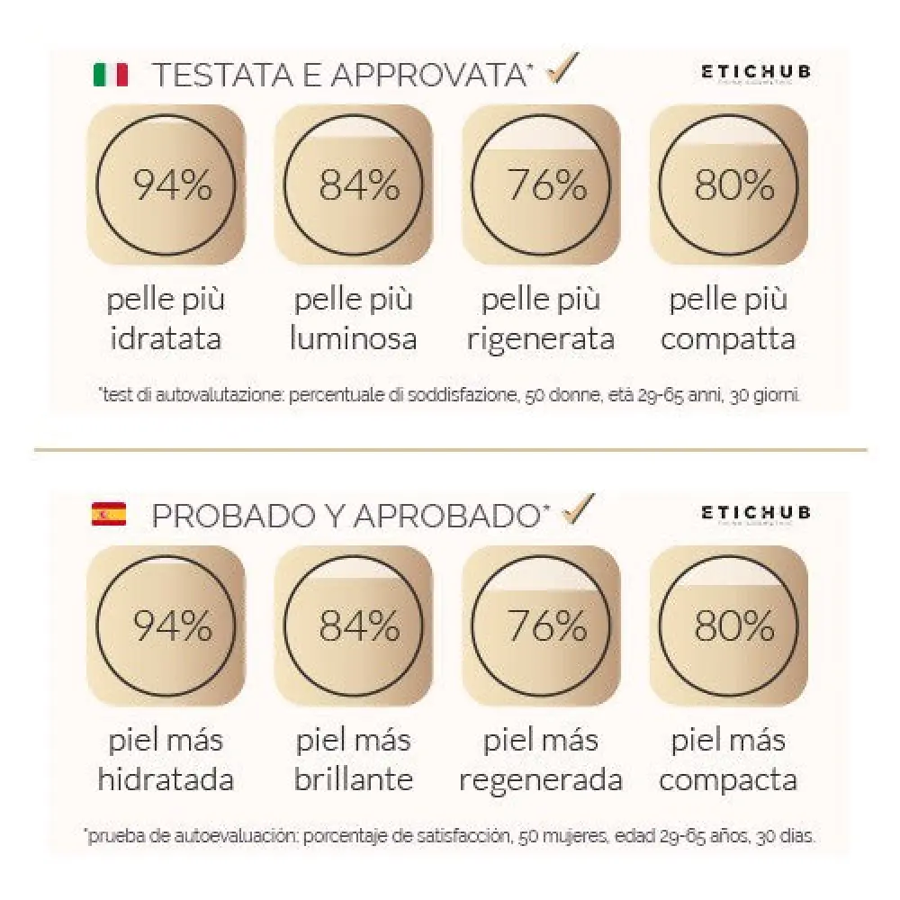 *test di autovalutazione: percentuale di soddisfazione, 50 donne, età 29-65 anni, 30 giorni.
