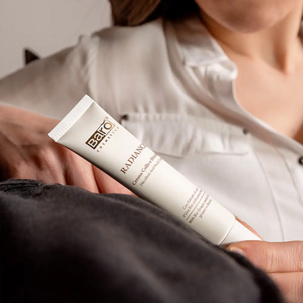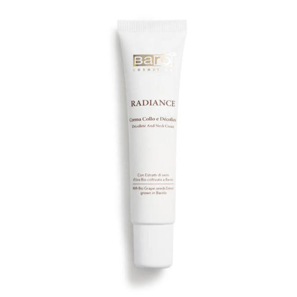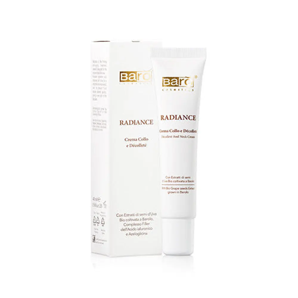 La Crema Collo e Décolleté Barò Cosmetics è un trattamento antirughe rimodellante e levigante, che aiuta a combattere i radicali liberi, contrastare i rilassamenti cutanei e minimizzare le macchie e i segni dell'età.
