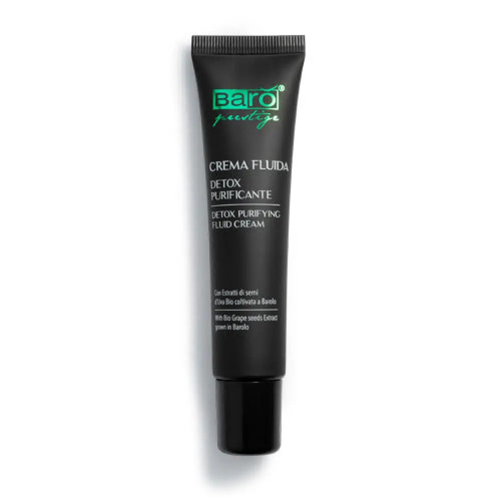 La Crema Fluida Detox Barò è un trattamento purificante e opacizzante, ideale per controllare la produzione di sebo e ridurre progressivamente le lesioni da acne.