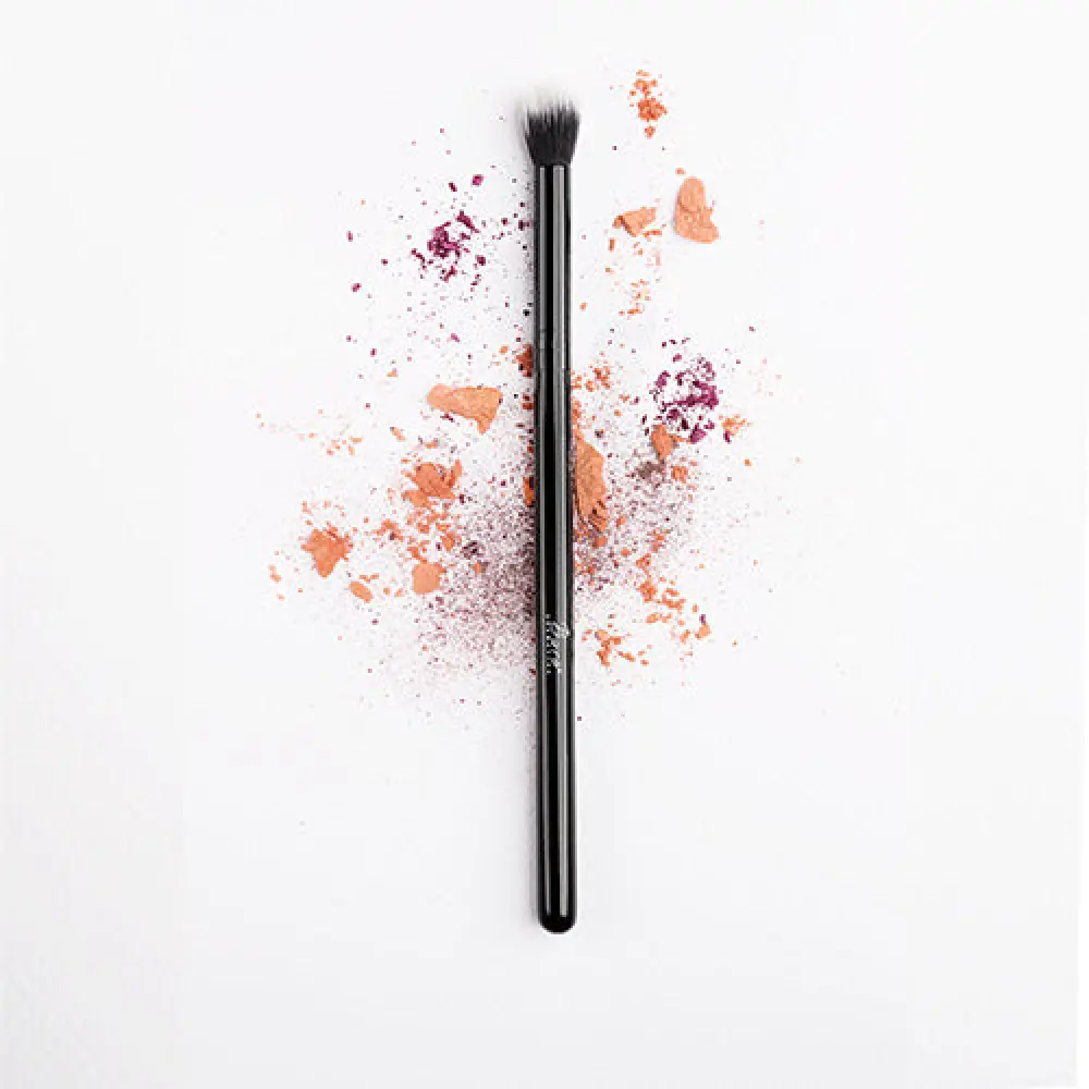 Dalle setole generose, spaziate e scalate è ideale per stendere gli ombretti su tutta la palpebra mobile e fissa, intensificandone il colore. Permette un'applicazione controllata dell'ombretto nella piega dell'occhio.