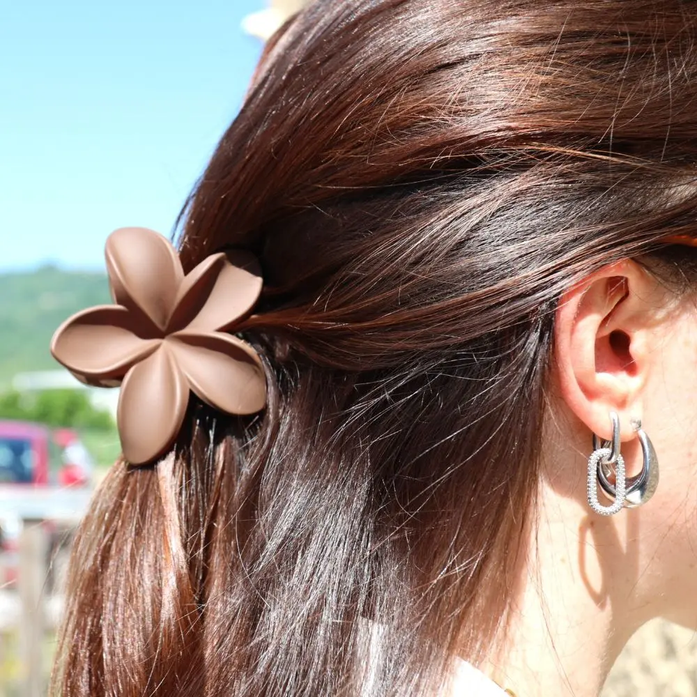 Fermaglio per Capelli a forma di fiore, dal design elegante e dal finish opaco color cioccolato. Garantisce una tenuta sicura e confortevole, aggiungendo un tocco raffinato a qualsiasi acconciatura.
