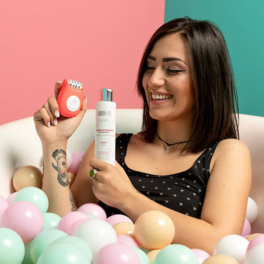 A contatto con l'acqua, la sua speciale texture si fonde in una mousse cremosa che facilita il massaggio e deterge delicatamente la pelle. Appositamente pensato per sprigionare energia e vitalità e per depurare la pelle dalle cellule cutanee morte.